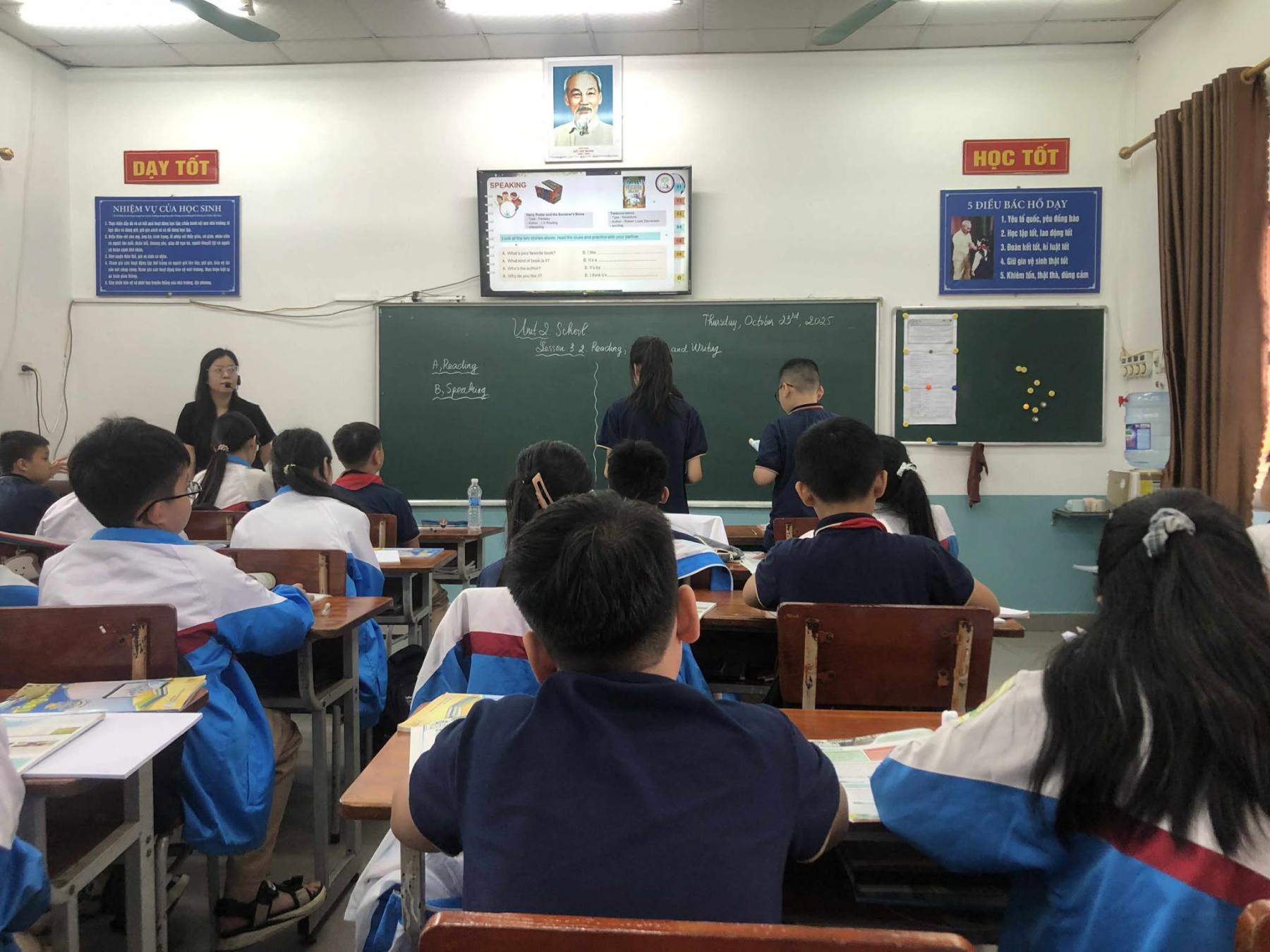 Trong khi đó, ở khối lớp 6, không khí lớp học có sự thay đổi rõ rệt. Học sinh bắt đầu chuyển sang giai đoạn học tập mang tính hệ thống hơn, với yêu cầu cao hơn về từ vựng, ngữ pháp và kỹ năng đọc – viết. Phương pháp giảng dạy cũng vì thế mà thiên về giải thích cấu trúc, luyện tập bài tập và phát triển khả năng tư duy ngôn ngữ.
